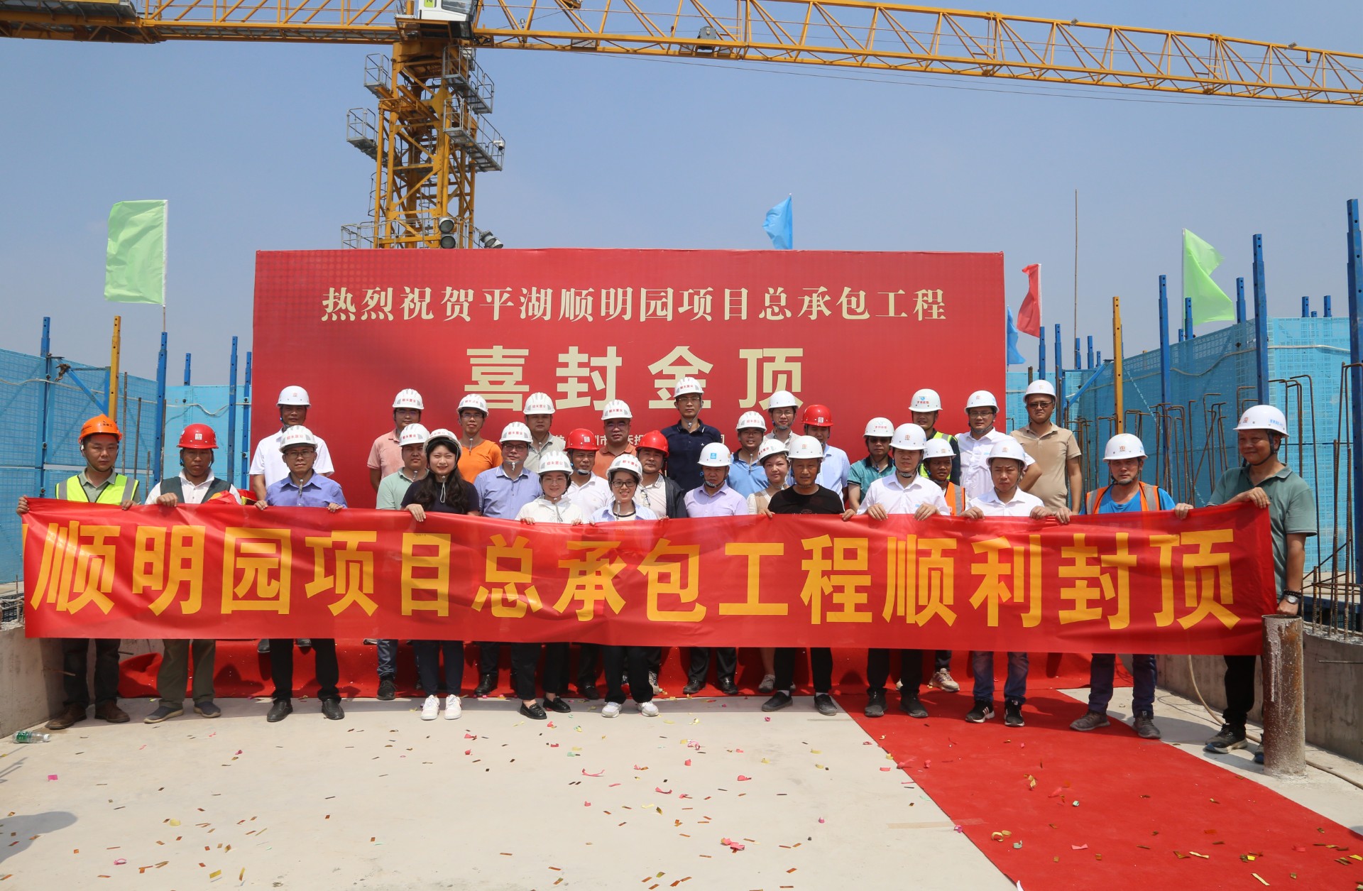 5月30日上午,順明園項目隆重舉行了1棟主體結構封頂儀式。隨著最后一斗水泥由塔吊車拉起升空,送至屋面樓頂,現(xiàn)場禮炮齊鳴,1棟主體結構正式封頂大吉。集團副董事長、總包單位負責人、監(jiān)理單位負責人以及順明園項目全體人員等參加了封頂儀式,共同見證了這一美好時刻。