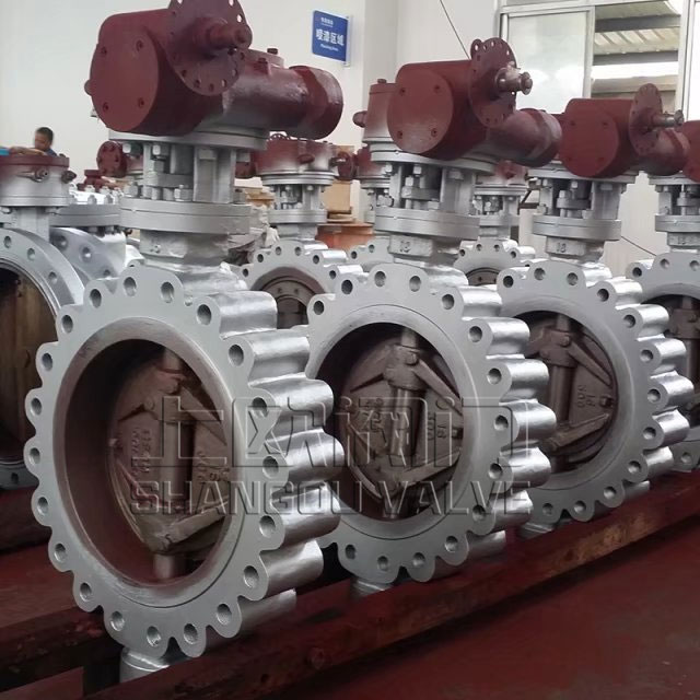 對(duì)夾式多層次金屬硬密封蝶閥采用三偏心結(jié)構(gòu),閥座與碟板密封面均采用不同硬度和不銹鋼制作,具有良好的耐腐蝕性,使用壽命長,本閥均有雙向密封功能,產(chǎn)品符合國家GB/T13927-92閥門壓力試驗(yàn)標(biāo)準(zhǔn)。 電動(dòng)對(duì)夾式金屬硬密封蝶閥采用精密的J形彈性密封圈和三偏心多層次金屬硬密封結(jié)構(gòu),被廣泛用于介質(zhì)溫度≤425℃的治金 、電力、石油化工、以及給排水和市政建設(shè)等工業(yè)管道上,作調(diào)節(jié)流量和載斷流體使用。該閥采用三偏心結(jié)構(gòu),閥座與碟板密封面均采用不同硬度和不銹鋼制作,具有良好的耐腐蝕性,使用壽命長,電動(dòng)硬密封蝶閥均有雙向密封功能,產(chǎn)品符合國家GB/T13927-92閥門壓力試驗(yàn)標(biāo)準(zhǔn)。