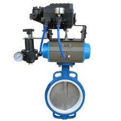 氣動調節(jié)蝶閥采用電-氣閥門定位器,以電信信號和壓縮空氣為動力,接受控制系統(tǒng)輸入4-20MA或1-5V電流信號,由調節(jié)器將壓縮空氣轉?成氣源壓力輸入輸出,改變閥板的旋轉角度(0-90度任意角),具有較好的調節(jié)控制流量參數(shù)。