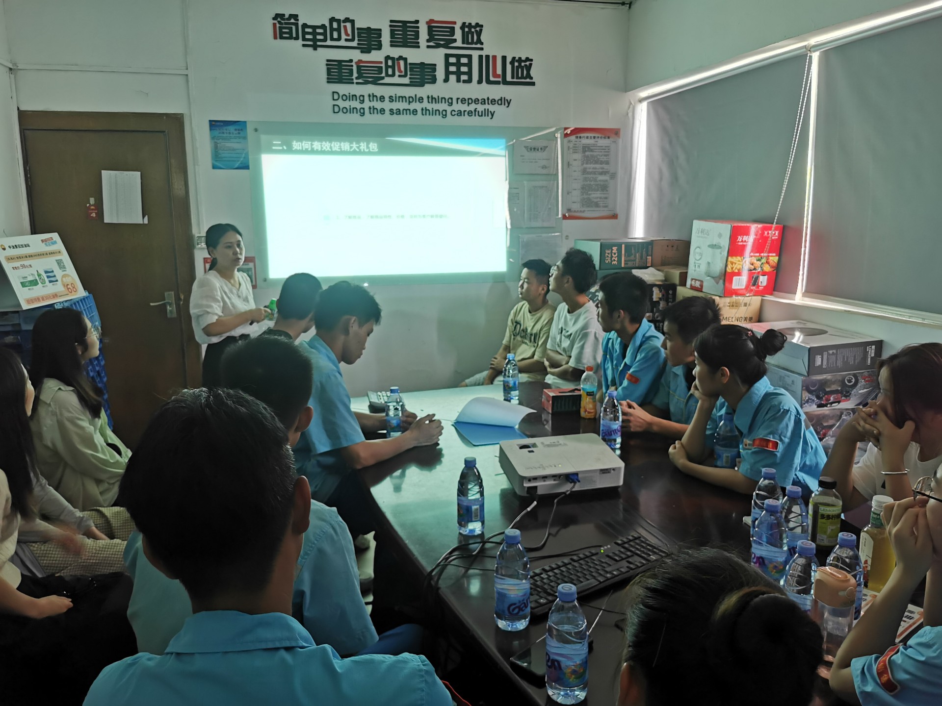 7月27日,非油品部在景田加油站會(huì)議室為新田、景田加油站的員工開展禮包促銷宣講,宣講內(nèi)容包括為什么要銷售大禮包、如何有效促銷禮包、新禮包產(chǎn)品的產(chǎn)品宣傳及獎(jiǎng)勵(lì)機(jī)制。
